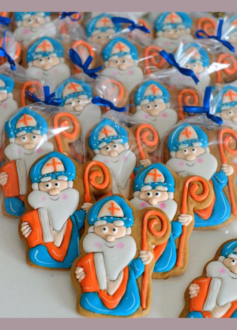 Ароматный медовый пряник с изображением Святого Никола, украшен качественной сахарной глазурью. Размер пряника 10 см. Каждое изделие упаковано отдельно в прозрачный пакет и перевязано праздничной лентой. Идеальный вариант для подарков детям, праздничных мероприятий, школьных праздников и корпоративных приветствий.