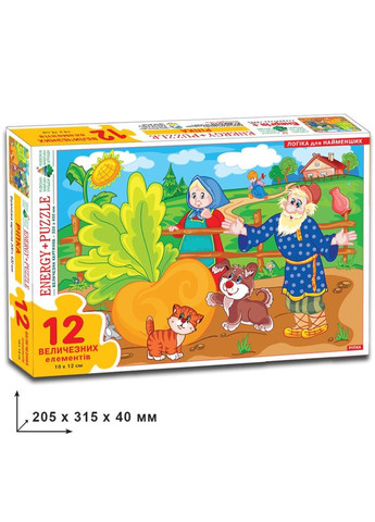Яркие интересные пазлы "Репка" 82074 – тематический набор из улучшенной серии украинской торговой марки «Энергия Плюс», рассчитанный на детей старше двух лет. Комплект, представленный в красивой, подарочной упаковке, отлично подойдет в качестве презента для любого малыша, будь то мальчик или девочка. В набор пазла входят прочные детали, разработанные из экологически чистого, безопасного для детского здоровья картона, с использованием абсолютно безвредных красок, не имеющих запаха. Объедините веселую игру и полезное развивающее занятие с красивыми пазлами, которые помогут Вашему непоседе не только улучшить многие навыки, но и расширить кругозор. Подобное занятие с составлением пазлов полезно для тренировки мелкой моторики пальчиков, фантазии, развития ассоциативного и логического мышления. В комплект входит 12 элементов, из которых ребенок будет составлять картинку размером в собранном виде 30х42 см.