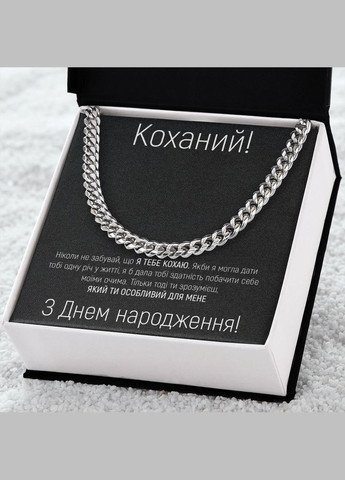 Подарите своему любимому супругу классическую цепочку модного кубинского плетения, которая демонстрирует силу и стиль, упакованную в подарочную коробку с Вашим личным трогательным сообщением! Если вы вовсю пытаетесь найти правильные слова, чтобы сказать человеку, которого вы любите, не волнуйтесь. Мы объединили наши открытки с идеальным украшением, гарантируя, что ваш любимый человек получит подарок, который он никогда не забудет. Наши подарочные наборы не продаются в магазинах и изготавливаются в единственном экземпляре под заказ. Можете быть уверены, что ваш подарок- единственный в своем роде и вы не встретите такой же нигде. Отправка наложенным платежом курьерской службой Новая почта. Мы уверены в том, что подарок для близкого человека- дело ответственное. Поэтому вы можете осмотреть его при получении и если что-либо не устраивает, отказаться. Никаких рисков с вашей стороны. Наша цепочка кубинского плетения - идеальный подарок для любого случая, включая Рождество, Новый год, дни рождения и праздники. Доступное в полированной нержавеющей стали и вы можете быть уверены, что это удивительно утяжеленное ожерелье станет основным элементом в ЕГО гардеробе. Характеристики: Материал: нержавеющая сталь 316 L Длина: 60 см Толщина: 6 мм Цвет: серебристый Комплект цепь кубинское плетение из нержавеющей стали 6 мм 60 см- 1 подарочная коробка из плотного высококачественного картона черного цвета, размер 9*9*2,5 см. с индивидуальной поздравительной карточкой -1 Обратите внимание, что компания Новая Почта снимает комиссию за наложенный платеж в размере 20 гривен + 2% от суммы оплаты.