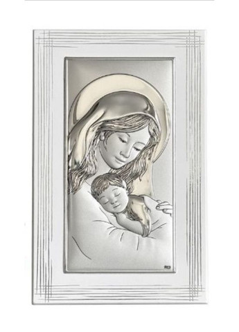 Икона от итальянского производителя – компании Estego. Изделие состоит из основания (коричневая матовая МДФ, покрытая несколькими слоями лака для защиты от повреждений) и лицевой стороны (чеканка с серебряным покрытием). При изготовлении используют материал MIRO-SILVER – это новая металлическая обработка поверхности, в которую входит слой чистого серебра, полученный с помощью методики вакуумного напыления, придающей покрытию твердость и большую устойчивость к окислению. На оборотной стороне есть отверстие и подножка, поэтому икону можно разместить на стене или поставить в Вашем доме. Эта икона считается одной из древнейших, где удачно сочетается божественное и земное и воплощение вечной материнской любви и опеки. Изделие упаковано в мешочек и фирменную коробку, что позволяет использовать его как отличный подарок. Рекомендации по уходу: не использовать химические средства, протирать мягкой сухой тряпкой.