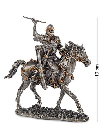 Статуэтка оловянная Veronese Воин на коне 10х9,5 см 1903552 миниатюра Размеры изделия Длина: 9.5 см; Ширина: 2.5 см; Высота: 10 см; Вес: 0.37 кг. Воин, вооруженный до зубов всеми видами оружия, которые были доступны пятьсот лет тому назад, решил не облачаться в тяжелые латы, делающие человека неповоротливым и медлительным, а лишь защитил голову и тело при помощи легкой кольчуги. На седоке легкая одежда и сандалии, которые воин носит на босу ногу. В правой руке кавалериста короткое легкое копье, поднятое и занесенное назад для броска. Там же, с правой стороны, можно заметить длинный колчан со стрелами и старинный клинок в изящно украшенных ножнах. Статуэтка имеет темно-серый цвет, а некоторые элементы одежды седока и сбруя коня покрыта позолотой. «Воина на коне» можно разместить на письменном столе, чтобы чужаки не зарились на ваши важные документы. Он будет хорошо смотреться в библиотеке, большой комнате и на каминной полке. Фигурку можно подарить военному на день рождения или другу, который предпочитает жить в мире давно прошедших событий. Упакована в красивую подарочную коробку. Поэтому, покупая эту статуэтку, Вы получаете ценный и красивый подарок, который не требует дополнения. Благодаря надежной внутренней упаковке, изготовленной из пенопласта с углублениями для мельчайших деталей, Вы можете быть уверены в безопасности при транспортировке.