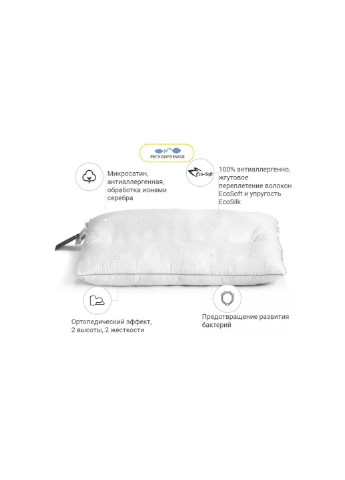 с ортопедическим наполнителем. позволят расслабиться шейному отделу позвоночника и хорошо отдохнуть за ночь. Эти подушки предназначены для людей, у которых проблема с шейным отделом позвоночника. Качественная ортопедическая подушка должна поддерживать и голову, и шейный отдел позвоночника. имеет очень полезную и невероятно приятную особенность – как и безумно дорогой наполнитель «микрогель», наш наполнитель в зимний период времени во время сна поглощает тепло человеческого тела и сохраняет его на протяжении 12-14 часов, что дает Вам возможность ложиться в теплую кровать и не ждать пока Ваше одеялко нагреется. В летний период времени подарит Вам благодатную прохладу. в разы крепче остальных наполнителей, что способствует долговечности наполнителя, его износостойкости и практичности в использовании, выдерживает более 500 стирок, не сбивается. упругость. Спиральная структура волокна препятствует сбиванию и изменению формы подушки. Упругие и в то же время мягкие, такие подушки обеспечивают максимальное удовольствие во время сна. c ионами серебра благотворно влияют на энергетический баланс организма, противостоит плесени и неприятным запахам, ускоряет процессы регенерации, а также препятствуют появлению пылевых клещей и прочих вредных микроорганизмов благодаря антибактериальным свойствам ионов серебра. Также стоит обратить внимание на уход за подушкой: периодически проветривать на свежем воздухе без попадания прямых солнечных лучей. соответствует действующим стандартам Украины (ГОСТ 30332 – 95, IDT) ДСТУ ГОСТ 30332:2007