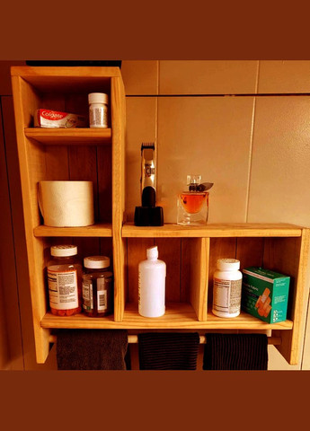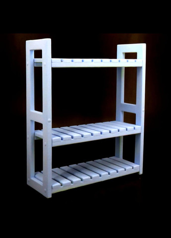 Размеры наружные: высота - 100см, глубина - 10см, ширина - 20см, расстояние между полками - 15см. На стену крепится с помощью потайных крепежей. Материал: дерево.