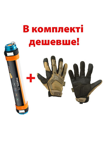Акционный комплект: перчатки военные тактические полнопалые сенсорные ARES UAD Койот плюс фонарик-повербанк UAD с аккумулятором на 5200 мАч. Перчатки военные тактические полнопалые сенсорные ARES UAD Койот Перчатки модели ARES от UAD это новый этап развития тактических перчаток на рынке Украины. При разработке данной модели мы учли пожелания пользователей и операторов и сделали максимально удобные и универсальные перчатки каждый день. Каждый палец усилен для того, чтобы ваша пара прослужила наибольший срок. Нижняя часть перчатки закрыта крепкой синтетической кожей, что продлевает срок службы перчатки и уменьшает скольжение предметов, а ткань, облегающая тыльную сторону ладони, улучшает посадку самой перчатки на вашей руке. Такая композиция материалов помогает сохранить руки сухими и комфортными в любых условиях. Перчатки ARES подойдут как для стрельбы и работы с оружием/экипировкой, так и для повседневных работ (устройство позиций, переноска вещей и т.п.). Цвет перчаток и лейб подобран так, чтобы они не отсвечивали при свете фонаря. Фирменный манжет UAD переработан и усилен – как резиновая часть, так и VELCRO. Это улучшает фиксацию перчаток на кистях. Сами перчатки снабжены небольшими петлями для быстрой фиксации рукавиц на руке и возможности подвеса их на креплении карабина. Цвет этой модели – койот. Модель спроектирована в Украине. Кемпинговый фонарь-лампа повербанк водонепроницаемый с магнитом 25см UAD 5200 мАч Кемпинговый многофункциональный фонарь сочетает преимущества фонарика и повербанка. Общий аккумулятор позволяет использовать его емкость (5200 мАч) максимально эффективно в зависимости от потребностей. Фонарь имеет множество преимуществ: Влагозащищенный корпус, отвечающий стандарту IP68, то есть выдерживает погружение на глубину 1,5м. Два источника света – рассеянный (5 режимов) и направленный (1 режим). Максимальная яркость работы – 280 люмен. Режимы переключаются последовательным щелчком кнопки: 1. Первый режим – направленный свет – фонарик с торцевой стороны фонаря. Диаметр светового пятна с расстояния 1 метр – 10 см. яркая зона плюс 1 метр рассеяна. Следующие режимы включают рассеянный свет (боковая лампа): 2. Рассеянный свет Low – мощность 8% от максимума, до 60 часов работы. 3. Рассеянный свет Medium – мощность 30% от максимума до 16 часов работы. 4. Рассеянный свет Max – 100% мощности до 8 часов работы. 5. Рассеянный свет Flesh – желтый свет, прекрасно освещающий несмотря на слабый световой поток. Мощность 8% от максимума, более 60 часов работы. 6. Режим Caution – мигание двух цветов – красного и синего. Аварийный режим виден с большого расстояния. Работает до 60 часов. Зажим кнопки на 2 секунды выключает фонарь независимо от режима. Фонарь имеет usb выход, как обычный повербанк. Его можно использовать для подзарядки всех бытовых приборов. На корпусе фонарь