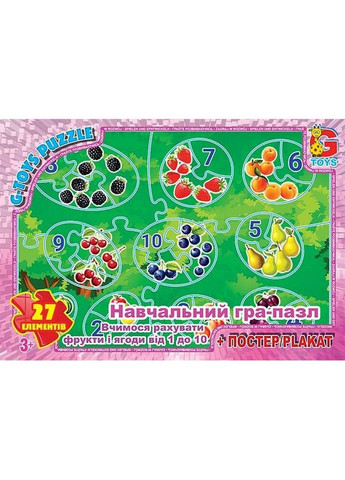Торговая марка G-Toys, произведено в Украине. Лицензия. Комплектность: 16 пазлов, постер (плакат) с изображением пазла. Упаковка коробка: 19 см х 13 см х 3 см. Прекрасный, яркий пазл из плотного картона создан для детей помладше. Стимулирует в ребенке сенсорное восприятие и интеллектуально познавательное развитие. Большие яркие детали, специально предназначенные для маленьких детских ручек, легко соединяются между собой и способствуют развитию мелкой моторики рук.