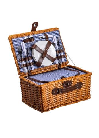 Корзина для пикника поможет провести незабываемое время с семьей или друзьями на пляже, в парке или у озера! Она также идеально подходит для подарка, ведь ее качество, функционал и уникальный вид порадует любого. Корзина достаточно просторная и содержит 2 набора посуды. Вы также можете разместить необходимую еду и напитки. Корзина для пикника не только красива и украсит Ваш праздник, но и экологична, безопасна для окружающей среды. Корзина для пикника включает: 1 термоизолированная сумка-холодильник, штопор (нержавеющая сталь), солонка и перечница (пластик), 2 столовых ножа, вилки и ложки (нержавейка с полипропиленовой ручкой), 2 тарелки 17,7 см (керамика), 2 бокала (пластик). Аксессуары внутри обернуты защитной бумагой и закреплены кожаными ремнями. ELISEY