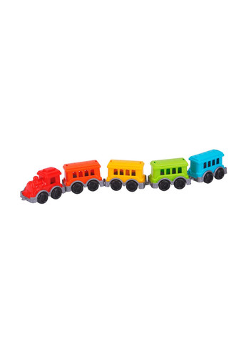 Грузовой состав быстро двигает вперед! Впереди – несколько технических остановок и длинный путь к конечной станции. Но это путешествие может не состояться без помощи опытного машиниста, поэтому приглашаем мальчиков присоединиться к железнодорожным происшествиям!Игрушечный набор включает локомотив в стиле ретро, ​​3 грузовых вагона и 1 пассажирский. В коробке также найдете и элементы железнодорожного пути, который нужно будет собрать самостоятельно. Для максимально яркой игры, игрушка предусматривает дополнительные звуковые и световые эффекты: нажмите кнопку, расположенную сбоку локомотива, и начнется настоящая магия: поезд начнет стремительно двигаться по пути, с яркой отсветом и громкими характерными звуками.Особенности:- детализированная модель ретро поезда с 3 грузовыми вагонами и 1 пассажирским;- набор включает 33 элемента;- легкосборная конструкция;- в комплект входят дорожные знаки;- для активации движения поезда необходимо нажать кнопку, расположенную сбоку;- присутствуют дополнительные эффекты: яркая подсветка и громкие характерные звуки;- поезд работает от 2 батареек типа АА (в комплект не входят);- 4 варианта железнодорожного пути в сложенном виде:101х101 см147х101 см124х124 см170х101 см- длина поезда (вместе с вагонами) – 111.5 см;– набор выполнен из первичного пластика, безопасного для детей.Размер упаковки: 60 см × 6 см × 38 смУпаковка:КоробкаВозраст: от 3 лет