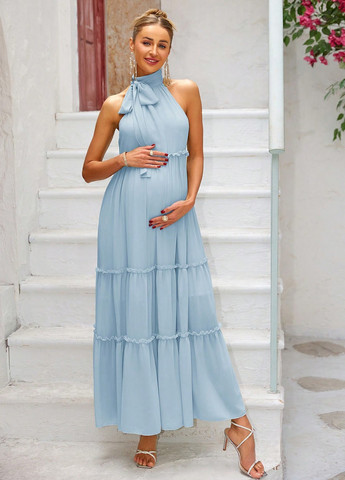 Платье для беременных: Вырез через шею и воротник с ушками. Многоярусные слои и оборчатый низ для создания струящегося дизайна. Пояс, подчеркивающий фигуру. Равномерное прилегание к телу. Слегка эластичная ткань для комфорта
