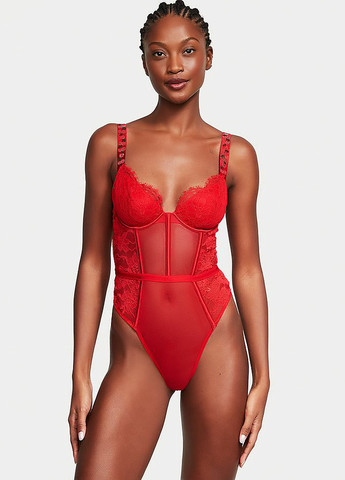 Женское боди Victoria´s Secret. Эффектный комбидрес из изящного кружева спереди и соблазнительным откровенным дизайном сзади. Красивое утонченное кружево. Двойная застежка сзади на крючки. Широкие регулируемые бретели, украшенные стразами в виде вишен. Открытый дизайн задней части. Сзади сеточка. Мягкие чашечки без вкладышей, с косточками. Есть вертикальные косточки. Эластичный пояс. Впереди кружево и сеточка. Снизу отстегивающийся бретель. Хлопковая ластовица. Отличное качество.