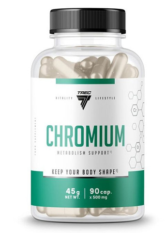 Chromium Trec Nutrition - идеальная добавка в период формирования фигуры вашей мечты. Участвуя в метаболизме углеводов, помогает уменьшить колебания уровня сахара в крови. Это чрезвычайно важно с точки зрения поддержания хорошего самочувствия и помогает свести к минимуму желание постоянно перекусывать и тянуться к сладкому или другим очень калорийным закускам. Поэтому хром - это один из важнейших препаратов, который следует применять в период сокращения резервной ткани и последних разрезов. Преимущества Chromium Trec Nutrition: Положительное влияние на восстановление концентрации глюкозы в крови Участие в процессах метаболических изменений углеводов Снижает внезапные падения инсулина и получает готовность закусать закуски и сладости Идеально во время формирования тела, e.g. во время похудения Можно применять в отношении уровня развития и пола физически активного человека Chromium - могут с успехом использовать все спортсмены, вне зависимости от их уровня и вида дисциплины. Это помогает в достижении значительного улучшения во время потери веса. Рекомендации по применению: 1 порция (1 капсула) в день, желательно во время еды, запивая большим количеством воды. Предостережение: При беременности, кормлении грудью, приеме медицинских препаратов или наличия любых заболеваний следует проконсультироваться с врачом перед употреблением пищевых добавок. В случае возникновения побочных реакций прекратите использование и проконсультируйтесь с врачом. Хранить в недоступном для детей месте. Не использовать, если внешняя защитная мембрана отсутствующая или повреждена. *** Производитель оставляет за собой право изменить внешний вид упаковки, состав и/или консистенцию продукта. **** БАД не является лекарственным средством!