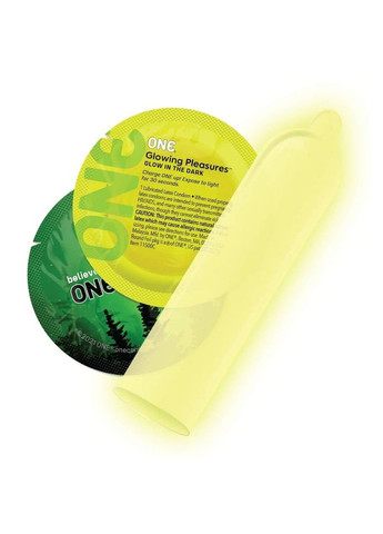 ONE Glowing Pleasures – презервативы, светящиеся в темноте. Они изготовлены из натурального латекса и содержат лубрикант на силиконовой основе. Из всей длины презерватива 205 мм., светится около 150–160 мм. Именно этот вид оставит незабываемые впечатления, разнообразит Ваши отношения и поможет добиться новых ощущений. ONE Glowing Pleasures для самых оригинальных и необычных! Размеры презерватива: Длина: 205 мм. Ширина: 53 мм. Толщина: 0.07 мм. Штрихкод: 2000994099972