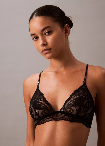 Бралетт  Calvin Klein. Этот бралетт, украшенный нежным цветочным кружевом, воплощает утонченную чувственность. Бралетт с мягкими чашечками. Без косточек. Эластичная резинка под грудью для лучшей поддержки. Тонкие регулируемые бретели. Бретели можно соединить между собой сзади с помощью крючка. Застегивается сзади на крючки. Отличное качество.