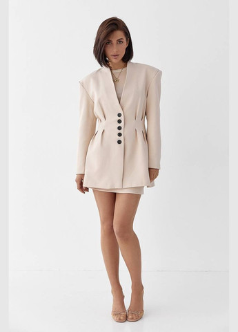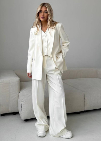 Жакет – элегантное дополнение к образу, добавляющее нотку классики и завершенности. Его укороченный крой подчеркивает талию, а строгие линии делают силуэт еще более утонченным. Он отлично смотрится как в застегнутом, так и в расстегнутом виде, придавая образу легкости и шарма.
