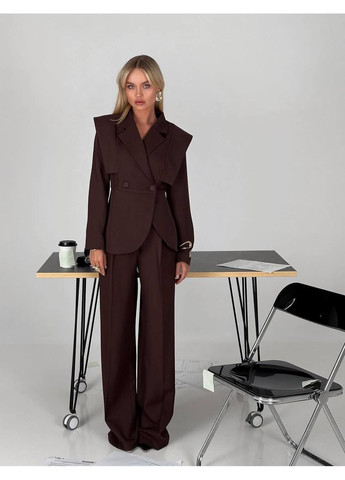 Цвет Коричневый / Фасон Тройка / Стиль Кэжуал / Узор Однотонный / Материал Костюмная