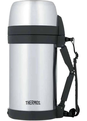 Термос для напитков объемом 1000 мл выполнен из долговечной нержавеющей стали. Двойная вакуумная стенка и пробка с термоизолятором позволяют термосу держать тепло или холод долгое время. Надежная пробка с кнопкой обеспечивает более легкое использование термоса. Благодаря оптимальной конструкции крышка термоса плотно прилегает к шейке, обеспечивая 100% герметичность. Крышку можно использовать как стаканчик. На наружной поверхности термоса нанесена надпись. Термос имеет трикотажный ремешок для удобства удержания.