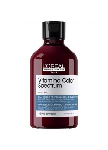 L'Oreal Vitamino Color Spectrum Blue Dyes – это профессиональный шампунь с синими пигментами, специально предназначенный для нейтрализации оранжевых полутонов, сохранения 5 измерений цветового спектра и сияющего блеска на светло-каштановых окрашенных волосах. Благодаря содержанию феруловой и лимонной кислот средство защищает цвет, сохраняет его насыщенность и обеспечивает холодный, глубокий тон. Преимущества Blue Dyes Shampoo: • Нейтрализует рыжие, медные и теплые оттенки; • Сохраняет насыщенность цвета до 100 дней; • Обеспечивает блеск и холодный тон без ущерба для структуры волос; • Мягкое очищение без вымывания пигмента; • Профессиональное действие на дому. Состав активных компонентов: • Синие пигменты – глубоко проникают в волосы и нейтрализуют нежелательные теплые оттенки; • Феруловая кислота – мощный антиоксидант, который помогает сохранить пигмент и защищает от воздействия внешней среды; • Лимонная кислота – сглаживает кутикулу волос, делая их более блестящими и эластичными. Текстура: Насыщенная гелевая текстура с синим оттенком, которая легко вспенивается и равномерно распределяется по волосам. Не отягощает волосы и не пересушивает кожу головы. Как использовать: Нанесите шампунь на влажные волосы. Равномерно распределите по длине и вспените. Оставьте на 2–5 минут в зависимости от желаемого эффекта. Тщательно смойте водой. Для усиленного эффекта используйте вместе с Vitamino Color Spectrum Deep Conditioner или Glass Shine Serum.