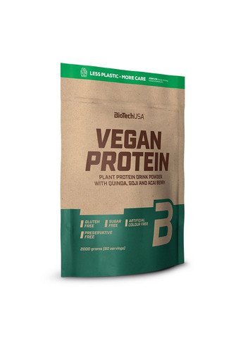 В Vegan Protein специалисты Biotech достигли этого путем объединения двух источников белка, которые прекрасно дополняют друг друга - рисового белка, который содержит мало лизина, но он богат серосодержащими аминокислотами (такими как цистеин и метионин) и горохового белка который как раз богат лизином.Особенности:Веганский протеиновый комплекс (рис и горох)Без сахара и лактозыБез глютенаБез подсластителейБез красителейБез консервантовБез GMOс 5 видами супер продуктов Упаковка изготовлена с использованием уменьшенного количества пластика.Для вас, если вы ведете веганский или вегетарианский образ жизни. Vegan Protein может быть отличным дополнением к потреблению белка, особенно если вы занимаетесь спортом содержание растительного белка в Vegan Protein помогает наращивать мышцы и поддерживать мышечную массу.Как принимать:Смешайте 1 порцию (25 грамм 3 столовых ложки) порошка с 250 мл воды. Употребляйте его сразу после тренировки.Содержание элементов в 1й порции25 граммКалории 106 ккалЖиры 2,5 г- насыщенные 0,5 гУглеводы 3,25 г- сахар Пищевые волокна 0,8 гБелок 19 гСоль 0,55 гL-глютамин 1390 мгL-аргинин 650 мгСостав может незначительно отличаться в зависимости от вкуса