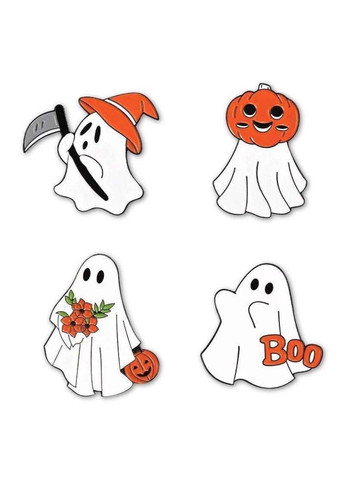 Изделие упаковано в прозрачный защитный пакетик, и к нему прилагается подарочный мешочек для хранения. Значки в комплекте: 4 шт. - привидение в шляпе: 3,0 х 3,0 см (6,0 гр); - привидение с тыквой на голове: 2,2 х 3,0 см (5,0 гр); - привидение с букетом: 2,5 х 3,0 см (6,0 гр); - привидение Boo: 3,0 х 3,0 см (7,0 гр). Рекомендации по уходу за значками: сохраняйте изделия в отдельном мешочке или шкатулке, подальше от солнечных лучей и влаги; не бросайте, не сгибайте, не растягивайте и не давите на изделие; избегайте контакта с духами, кремами и другими косметическими средствами; перед стиркой одежды обязательно снимайте с нее значки; не позволяйте детям или домашним животным играть со значками - это опасно для их здоровья. Внимание! Цвет изделия может отличаться по тону в зависимости от настроек монитора.