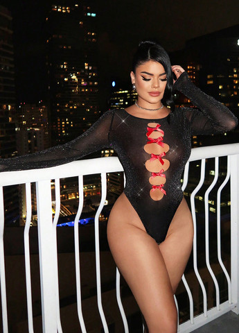 Этот соблазнительный женский боди - идеальный выбор для особых моментов. Он выполнен из полупрозрачной эластичной сетки, которая нежно облегает фигуру, подчеркивая женственность и утонченность. Соблазнительные вырезы, оформленные перекрестными ремешками, создают эффектный акцент и добавляют образу роскоши и блеска.