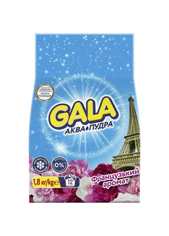 Стиральный порошок Gala (Гала) Аква-Пудра Французский аромат – без труда справится с загрязнениями, придаст вещам свежести и не ударит по бюджету. Все, что нужно для чистоты и комфорта – в одной упаковке! Основные преимущества: эффективное удаление пятен – справляется даже с тяжелыми загрязнениями приятный аромат - одежда остается свежей после стирки доступная цена - качество, не требующее больших затрат Способ применения: Добавьте требуемое количество порошка в отсек стиральной машины. Загрузите белье. Меры предосторожности: Беречь от детей. Может вызвать серьезное повреждение глаз. Раздражает кожу, избегайте попадания на кожу и в глаза. При попадании в глаза немедленно промойте большим количеством воды и обратитесь к врачу. Используйте средства защиты глаз и лица. Хранить вдали от продуктов питания. Характеристики Вес: 3,6 кг Количество стирок: 24 Производитель: Gala, Украина.