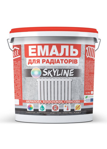 Высококачественная глянцевая белая акриловая эмаль на водной основе «Эмаль для радиаторов SkyLine» (Скайлайн). Термостойкая – выдерживает температуру до +120°С. Не имеет запаха. Быстро сохнет. Не желтеет. Предназначена для декоративно-защитной покраски радиаторов отопления и труб водоснабжения, а также загрунтованного металла. Может быть нанесена на крепко держащиеся старые алкидные покрытия. Используется внутри помещений. Создает устойчивое к механическим нагрузкам и неабразивным моющим средствам покрытие. Атмосферостойкая. Содержит в своем составе ингибитор коррозии, позволяющий нанести эмаль на участки негрунтованной металлической поверхности при проведении работ по реставрации поверхности. Прочная, эластичная, с высокой адгезией и укрывистостью. СПОСОБ ПРИМЕНЕНИЯ: Поверхность, предназначенная для окраски, должна быть сухой, чистой, обезжиренной, обеспыленной. На ранее окрашенных участках, удалить слабо держащиеся фрагменты, очистить от пыли, грязи и всех осыпающихся частиц. Не наносите на разогретые радиаторы и трубы, а также цветные металлы. Перед использованием тщательно перемешать. Наносить с помощью щетки (кисти), валика или распылителя при температуре не ниже +5°С. Эмаль наносить в 1-2 слоя. Второй слой наносить после высыхания первого. ТЕХНИЧЕСКИЕ ХАРАКТЕРИСТИКИ: Время высыхания – 1-2 часа при температуре +18-20°С и относительной влажности воздуха 65%. Расходы на один слой – 100-120 мл/м2; Растворитель – вода; Степень блеска – глянцевая; Класс мокрого истирания – 1 класс; Срок хранения – 24 месяца; Термостойкость – до 120°С; Цвет белый. Цветируется; Состав – суспензия пигментов и наполнителей в водной дисперсии синтетического полимера. Ингибитор коррозии, добавки. Доступны в продаже фасовка – 400мл, 750 мл, 3л, 5л, 10л Производитель: SkyLine; Страна изготовитель: Украина; Антисептическое свойство: Нет; Аэрозольная эмаль: Нет; База: А; Без запаха: Да; Время высыхания: 1 час; Количество компонентов: Однокомпонентное; Максимальная температура хранения: 35 град.; Минимальная температура хранения: 5 град.; Основание эмали: Акрил; Расход: 10 кв.м; Способ нанесения: Кисточкой, Валиком, Механизированный; Срок хранения: 24 мес; Степень блеска: Глянцевая; Тип окрашиваемого материала: Металл, Бетон, Штукатурка, Дерево, Кирпич; Условия эксплуатации: Термостойкие к воздействию повышенных температур, Ограничено атмосферостойкие для внутренних работ, Универсальные, Специальные, Атмосферостойкие для наружных работ; Фасовка эмали: 3 литра; Форма выпуска: Банк; Цвет: Графитовый; Пользовательские характеристики Бренд: Skyline; Разновидность: Для радиаторов; Фасовка: 3 л; Вес: 3;