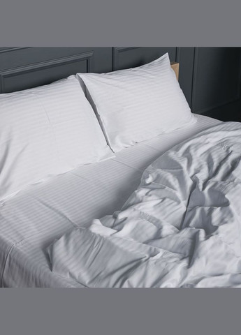 Комплект постельных принадлежностей Family Linens. Постель белоснежная, состоит из двух подушек и одеяла с легким узором в виде полос. Ткань выглядит гладкой и ухоженной, создавая ощущение свежести и комфорта. Комплект постельного белья из страйпа сатина это качественный текстиль из 100% хлопка или смеси хлопка с добавлением синтетических волокон. Страйп сатин отличается характерными полосами, создаваемыми за счет особого плетения нитей, чередуя матовые и глянцевые поверхности.
