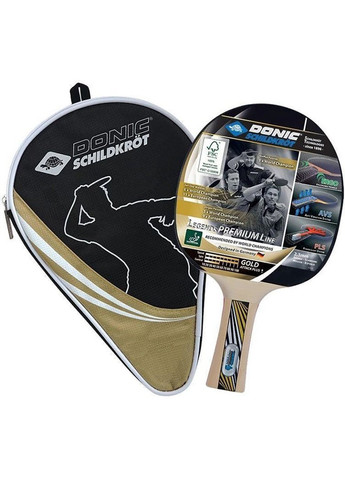 Ракетка Legends Gold из премиальной линейки Donic рассчитана на атакующий тип игры. В комплекте с ракеткой идет чехол по форме ракетки. Универсальная накладка Energy создана по технологии SR (Starter Technology) из каучука и имеет губку толщиной 2.3 мм. Форма ручки Concave – ручка, расширяющаяся до конца. Ракетка была одобрена Международной федерацией настольного тенниса ITTF. Anti-Vibration-System (AVS) - это амортизирующая система, разработанная Schildkröt. Благодаря AVS улучшается контроль мячика и снижаются вибрации, вызванные энергией удара. Два амортизирующих мягких слоя находятся между ручкой и ее покрытием. В результате AVS повышает точность ударов как в оборонительном, так и в наступательном стиле игры. Power Light System (PLS) – это система, которая снижает общий вес рукоятки и переносит центр тяжести на центральную часть благодаря пустой конструкции. Таким образом, во время игры ваши удары будут гораздо быстрее и мощнее, а чувство усталости придет гораздо позже. Ручка Ergo (эргономичная) анатомически точно прилегает к руке и помогает игроку чувствовать себя с ракеткой единым целым. Закругленная форма ручки позволяет избежать давления в руке и делает процесс игры более приятным и комфортным.