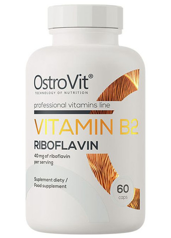 Ostrovit Vitamin B2 Riboflavin это высококачественная биологически активная добавка, которая является источником рибофлавина. Источник витамина B2 – одна порция диетической добавки обеспечивает организм 40 мг рибофлавина. 1 порция = 1 капсула. Производительность – одна упаковка продукта содержит 60 порций, что достаточно двух месяцев регулярного приема. Удобная форма - препарат доступен в форме легко глотаемых капсул, что обеспечивает удобство приема диетической добавки. Ostrovit Vitamin B2 Riboflavin – концентрированный источник ценного микроэлемента Рибофлавин, известный также как витамин B2, является водорастворимым соединением, относящимся к витаминам группы B. Это микроэлемент, который может поступать в организм с ежедневной пищей - дрожжи и телячья печень считаются самыми богатыми источниками, но вещество также можно найти в других субпродуктах, а также в молоке, молочных продуктах. из сухих бобовых, а также зеленых листовых овощей. Свойства ингредиентов, содержащиеся в Ostrovit Vitamin B2 Riboflavin Рибофлавин способствует поддержанию нормального энергетического обмена и обеспечивает нормальное функционирование нервной системы Это соединение помогает также поддерживать оптимальное состояние слизистых оболочек и эритроцитов, а также здоровое состояние кожи. железа. Способ применения Принимайте 1 порцию (1 капсулу) каждый день. Предостережение: При беременности, кормлении грудью, приеме медицинских препаратов или наличии каких-либо заболеваний следует проконсультироваться с врачом перед употреблением пищевых добавок. *** Производитель оставляет за собой право изменить внешний вид упаковки, состав и/или консистенцию продукта. **** БАД не является лекарственным средством!