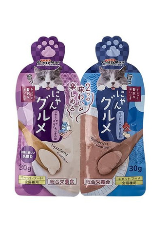 Питание домашних котов требует особого внимания к деталям, и CattyMan Complete Twins Pouch станет отличным выбором для тех, кто ищет качественный и полезный корм. Этот уникальный продукт включает два разных вида паучей, каждый из которых предлагает свой уникальный вкус и пользу для здоровья вашего питомца. Уникальный состав ингредиентов Первый пауч включает в себя куриное филе, крем-сыр, икру рыбы, порошок зеленого чая и экстракт макрели. Куриное филе является отличным источником белка, который способствует поддержанию мышечной массы. Крем-сыр обогащает рацион кальцием и помогает укрепить кости и зубы. Икра рыбы богата Омега-3 жирными кислотами, которые улучшают состояние кожи и шерсти, а также поддерживают здоровье сердца. Второй пауч содержит тунец, макрель, курицу, сардину, кукурузный крахмал, порошок зеленого чая и экстракт морского гребешка. Тунец, макрель и сардина, как источники высококачественного белка и незаменимых жирных кислот, способствуют поддержанию здоровья сердца и оптимальной работы иммунной системы. Кукурузный крахмал обеспечивает легкоусвояемые углеводы, которые поддерживают активность и энергию вашего кота. Уникальность упаковки CattyMan Complete Twins Pouch предлагает два разных вкуса в одной упаковке, что позволяет разнообразить диету вашего питомца без необходимости покупать несколько разных продуктов. Это особенно удобно для тех владельцев, кто хочет попробовать что-то новое или определить, какой вкус больше всего нравится их коту. Гибкость в применении CattyMan Complete Twins Pouch может быть использован как дополнение к сухому корму, так и как самостоятельное блюдо. Его можно добавлять в сухой корм как топпинг для улучшения вкуса или предлагать как полноценное блюдо, что идеально подходит для котов с особыми пищевыми предпочтениями или для тех, кто нуждается в дополнительном увлажнении рациона. CattyMan Complete Twins Pouch – это не просто корм, это забота о здоровье и благополучии вашего питомца, поданная в удобной и инновационной форме. Выбирая этот продукт, вы выбираете лучшее для своего кота. Почему стоит купить жидкий корм для котов КэттиМен Complete Twins Pouch: двойной вкус в одной упаковке: наличие двух разных паучей с различными вкусами в одной упаковке позволяет разнообразить рацион кота и определить его предпочтения; высококачественные ингредиенты: курица, тунец, макрель, сардина и икра рыбы обеспечивают богатый источник белков, Омега-3 жирных кислот и других необходимых питательных веществ; хорошо переваривается, легко усваивается: крем-пюре легче усваивается, что является важным аспектом при кормлении ослабленных или восстанавливающихся после болезни животных, а мягкая текстура помогает избежать раздражения или нагрузки на желудок и кишечник кота, что актуально для питомцев с чувствительным пищеварением; контроль веса и профилактика диабета благодаря низкому содержанию жира; польза для здоровья: включение крем-сыра, порошка зеленого чая и экстрактов из морских продуктов способствует укреплению костей, улучшению состояния кожи и шерсти, а также поддержанию здоровья сердца; поддержание гидратации: пюреобразная консистенция корма помогает поддерживать необходимый уровень гидратации, что важно для здоровья почек и мочевыводящих путей котов, а также критически важно для котов, испытывающих трудности с питьем воды в период вос