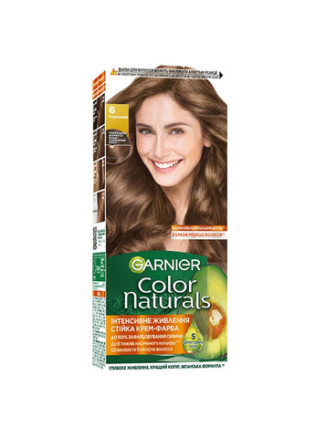 Краска для волос Garnier (Гарньер) Color Naturals - с ухаживающими маслами дарит насыщенный стойкий цвет и одновременно питает волосы, делая их мягкими и блестящими. Основные преимущества: кремообразная текстура легко наносится и не течёт во время окрашивания пигменты глубоко проникают в структуру волоса натуральные масла питают изнутри и разглаживают поверхность волосы становятся более сильными и здоровыми, цвет — ярким и стойким до 100% закрашивания седины и защита от вымывания цвета В комплекте: Крем-краска (40 мл). Молочко-проявитель (60 мл). Бальзам-уход (10 мл). Пара перчаток. Инструкция по применению. Способ применения: смешайте компоненты и нанесите краску на волосы согласно инструкции внутри упаковки. Характеристики Объем: 110 мл Производитель: Garnier, Польша.