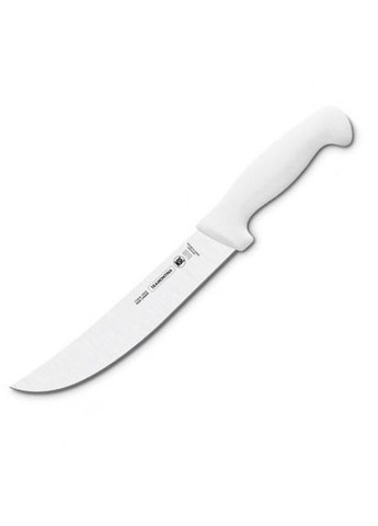 Нож для мяса Tramontina Profissional Master 20.3 см (24607/188) Назначение: для мяса. Длина: 203 мм. Материал лезвия: нержавеющая сталь DIN 1.4110. Толщина лезвия: 2 мм. Материал рукоятки: полипропилен с покрытием Microban. Режущая кромка: гладкая. Цвет ручки: белый. Без упаковки. Можно мыть в посудомоечной машине. Нож для мяса Tramontina Profissional Master с белой ручкой, 203 мм (24607/188) – отличный инструмент для обработки мяса. Это большой и удобный нож с нескользящей полипропиленовой ручкой и длинным широким лезвием. Рука защищена обухом и надежно фиксируется благодаря особой форме колодки. Любите мясные блюда? В таком случае такой нож для обработки Вам точно пригодится! Нож для мяса TRAMONTINA серии Profissional Master артикул 24607/188. Серия Profissional Master от Tramontina – это линейка ножей для профессионального использования, разработанная для применения в ресторанах и пищевой промышленности. Ножи этой линейки проходят термическую обработку, содержащую закалку (нагрев лезвия), отталкивающую температуру (охлаждение от 50 до -196 градусов) и отпуск (поглощение эластичности стали) для более длительного и эффективного срока эксплуатации. Лезвия ножей серии Profissional Master имеют жесткость 54-58 единиц по шкале Роквелла, благодаря чему остаются чрезвычайно острыми очень долго даже при интенсивном использовании. Нож изготовлен из высококачественной нержавеющей стали. Лезвие длиной 203 мм (8 дюймов) позволит с легкостью обработать мясо или рыбу, нарезать любые мясные продукты. Ручка изготовлена из полипропилена со специальными антибактериальными покрытиями Microban, что облегчает уход за изделием. Имеет анатомическую форму, благодаря чему работать ножом легко и удобно, рука не устает даже при длительном использовании. Ручка изготовлена в белом. Нож можно мыть в посудомоечной машине. Идеально подходит как для использования в профессиональной среде, так и для личной кухни. Прекрасный нож для обработки мяса. Но благодаря своей форме можно использовать нож для повседневного приготовления. Ножи серии MASTER — идеальные ножи для профессионального использования, надежные и прочные, долговечные с превосходной нарезкой. Лезвие – нержавеющая сталь DIN 1.4110, толщина 2 mm. Характерная черта этой серии — полипропиленовая ручка с антибактериальным покрытием Microban (Микробан), которое обеспечивает защиту от запахов, грязи и плесени, предотвращает рост грибков и микробов. Больше гигиены и безопасности при приготовлении пищи. Антибактериальный эффект длится так же долго, как жизнь самого товара. Идеальная V-образная форма заточки лезвия гарантирует точную аккуратную нарезку, даже после длительного использования. Ручка – удобная, массивная и эргономичная для комфортного и безопасного увлечения, специальная структура покрытия не дает ножу скользить в руке. Бренд Tramontina — один из лидеров мирового рынка по производству ножей, столовых и кухонных принадлежностей, посуды для приготовления пищи, инструментов для сельского хозяйства, строительства и сада. Tramontina – бразильская корпорация с вековой историей, мировой лидер в производстве товаров для кухни, дома, сада. Ассортимент Tramontina содержит самый широкий спектр продукции, начиная от современной кухонной утвари — ножей и столовых приборов, и заканчивая посудой с тефлоновым покрытием. Основанная в 1911 году Валентином Трамонтином, компания начиналась с небольшого кузнечного магазина в 