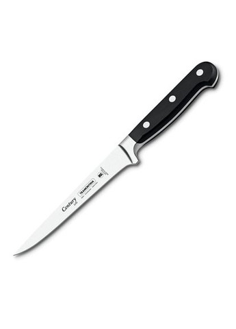 Tramontina — бразильская корпорация с вековой историей, мировой лидер в производстве товаров для кухни, дома, сада. Ассортимент Tramontina включает широчайший спектр продукции, начиная от современной кухонной утвари — ножей и столовых приборов, и заканчивая посудой с тефлоновым покрытием. Основанная в 1911 году Валентином Трамонтина, компания начиналась с небольшого кузнечного магазина в Рио Гранде. За сто лет усилиями членов семьи основателя из маленького кузнечного цеха компания превратилась в современную корпорацию, насчитывающую 10 крупных фабрик и выпускающую 18000 видов продукции, представленную в 120 странах мира. Благодаря инновационным разработкам, применению эко-технологий и современному дизайну, продукция компании Tramontina завоевывает все большую популярность. Под брендом Tramontina выпускаются универсальные ножи, профессиональные с сертификатом NSF (с антибактериальной защитой Microban), спортивные и раскладные ножи, а также мачете и вертела — качественные и стильные, практически с неограниченным сроком эксплуатации. Ножи Tramontina зарекомендовали себя отличным качеством, прочностью, широким ассортиментном и относительно низкой ценой. Профессиональная серия ножей Tramontina Century была выпущена ограниченным количеством к 100-летию компании. Профессиональный обвалочный нож Tramontina Century с лезвием длиной 15.2 см. Лезвие изготовлено из углеродистой нержавеющей стали с добавками хрома и молибдена. Сталь закаливается на твёрдость 55-58 единиц особым способом глубокого охлаждения, что обеспечивает длительную остроту лезвия и идеальный срез. Лезвие не тускнеет, устойчиво к высоким температурам. В качестве украшения — гравировка логотипа Tramontina Century. Анатомической формы рукоять из поликарбоната, армированного стекловолокном, обладает высокой ударопрочностью. Рукоять формируется непосредственно на стальной основе вокруг 3 стальных заклепок, предотвращая швы, зазоры и щели. Такая конструкция ножа не позволяет накапливаться пищевым остаткам и поддерживает максимальную гигиену. Конструктивная особенность ножа Tramontina Century — превосходный баланс и крепкий удобный захват. Это обеспечивает больший комфорт и безопасность при работе. Вес ножа отлично уравновешивает его движение, ход ножа быстрый и легкий. Так что при долгой работе с таким ножом рука не устает. Идеально подходит для аккуратной обработки мяса. Эти ножи слишком хороши, чтобы быть правдой! Особенности: Режущая кромка ножа гладкая Изготовлен из углеродистой нержавеющей стали с добавками хрома и молибдена Лезвие не тускнеет, очень долго остается острым Устойчиво к высоким температурам Эргономичная ударопрочная цельнолитая рукоять из поликарбоната, армированного стекловолокном Превосходный баланс и крепкий удобный захват Традиционный дизайн Можно мыть в посудомоечной машине