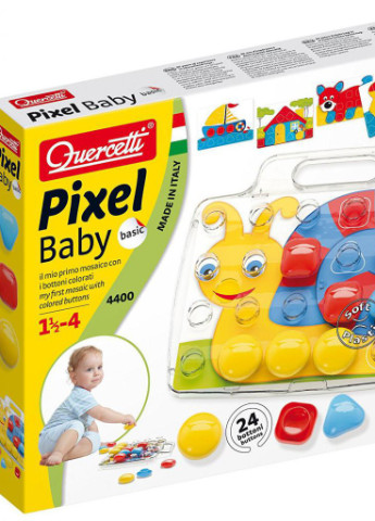 Код товару: U0378938Тип: мозаикаПол: для мальчиков и девочекМатериал: пластикПроизводитель: QUERCETTIМодель: Мозаика 24 крупные фишки + доскаВозраст: от 18 месяцевПримечание: Производитель может менять свойства, характеристики, внешний вид и комплектацию товаров без предварительного уведомленияБренд: QUERCETTIРазвивающий набор QUERCETTI Мозаика 24 крупные фишки + доска создан для погружения ребенка в мир форм, цветов и фантазий. Вы также сможете создать рисунок по образцу или придумать свой!Особенности детской мозаики:• В наборе 24 фишки 46мм в 3х цветах и 3х формах – круглые, квадратные, треугольные• В наборе картинки с одной стороны цветные, с другой – черно-белые, благодаря чему у ребенка появляется возможность самостоятельно выбрать цвета для «раскрашивания» картинок• Малыш сможет создавать картины по образцам или придумывать собственные сюжеты• Благодаря мозаике у малыша сформируется художественный вкус, аккуратность и точность, внимание и творческий поиск• Все игрушки компании перед запуском в серийное производство проходят обязательную апробацию в детских садах и школах• Весь процесс производства игрушек от проектирования до упаковки готовых изделий проходит на фабрике Quercetti в городе Турине (Италия).В набор входит:1. 24 крупных фишек в 3х цветах и 3х различных формах2. 8 двусторонних карточек3. Доска с ручкой для мозаики.Игра развивает:• Воображение• Мелкую моторику• Логику• Творческие способности.Рекомендовано для детей с 18 месяцев.