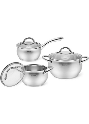 Отправка в течение 2-3 рабочих дней. Набор кухонной посуды MARTINEZ от датской торговой марки Fissman – высокие технологии отображены в классической форме и высоком качестве. Изготовлена из высококачественной нержавеющей стали, что способствует быстрому и равномерному распределению тепла, позволяет сократить расход энергии при приготовлении пищи. Нержавеющая сталь имеет высокие показатели экологической чистоты, что позволяет в процессе приготовления пищи максимально сохранить витамины и минеральные вещества в продуктах. Это исключительно жаропрочный, износоустойчивый, ударопрочный, не подверженный коррозии материал, что способствует сохранению прекрасного внешнего вида даже после многолетнего использования. Дно многослойное, индукционное, термоаккумулирующее капсульного типа - обеспечивает оптимальный нагрев и распределение энергии. Подходит для всех типов плит, включая индукционные и стеклокерамические плиты. Ручки из нержавеющей стали с надежным клепочным креплением. Крышки из термостойкого стекла с ободом из нержавеющей стали и отверстием для отвода пара. Посуду MARTINEZ можно мыть в посудомоечной машине. В состав набора входит 6 предметов: - кастрюля 1.8л с крышкой & Oslash; 16см; - кастрюля 3.45л с крышкой Ø20см; - ковшик 1.1л с крышкой & Oslash; 14см. Серия: Martinez; Антипригарное покрытие: Нет; Материал: Нержавеющая сталь 18/10(INOX304); <param name = "Объем: кастрюли: 1.8 л, 3.45 л; ковш 1.1 л. Кастрюля 1.8 л - Ø16 см, кастрюля 3.45 л - Ø20 см; ковш - Ø14 см; для отведения пара; Дно: Многослойное индукционное;<param name="Комплектация: 2 кастрюли, 1 ковш, 3 крышки; Посудомоечная машина: Да;