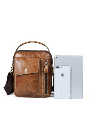 Материал: натуральная кожа высокого качества. Цвет: коричневый. Размеры (ШхВхГ, см): 18х21,5х6 см. Страна производитель: Китай. Бренд: Vintage. Описание: - основное отделение на молнии; - потайной карман на молнии; - накладной карман для телефона; - на тыльной стороне карман на молнии; - на лицевой стороне накладной карман с клапаном на магнитной кнопке; - вертикальный карман на молнии; - текстильный ремешок с кожаной вставкой на плечо (несъемный); Солиднейшая сумка из натуральной кожи светло-коричневого цвета. Аксессуар прошит по краям нитью бежевого цвета. Вы можете носить сумку как на работу , так и на встречи. Есть ручка для носки на плече и кожаная ручка, чтобы носить в руке. Аксессуар дополнен разнообразными карманами для удобства. Кожаная сумка всегда служит намного дольше, чем текстильная или из заменителей. Такая сумка будет отличным дополнением к вашему стилю и закончит ваш обра