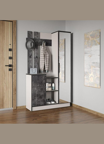 Размер: ● Высота 180 см ● Глубина 37.2 см ● Ширина 100.2 см Вес: 68 кг Цвета (+ Все возможные комбинации из двух цветов) : Антрацит, Аппалачи, Бетон, Белый, Венге темный, Сонома, Бетон темный, Бетон тефра, Дуб Гранж Песочный, Дуб Кверкус, Зеленый Дымчатый, Кашемир Производитель: Moreli/Украина Опис: Стильная прихожая Moreli KO-0004 — это практичное решение для организации пространства и хранения одежды и аксессуаров. Модель оснащена вместительными полками, зеркалом, крючками для верхней одежды и удобным закрытым шкафом. Петли с дотягивателем обеспечивают плавное и бесшумное закрывание дверцы. Регулируемые пластиковые ножки позволяют идеально выставить конструкцию даже на неровном полу. Качественная фурнитура и подробная инструкция в комплекте делают сборку быстрой и удобной. Корпус и фасады изготовлены из прочного ламинированного ДСП, крючки и ручки из надежного металла. Производитель – украинский бренд Moreli, гарантирующий современный дизайн и надежность каждой детали.