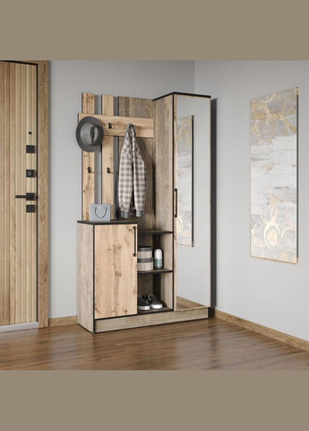 Размер: ● Высота 180 см ● Глубина 37.2 см ● Ширина 100.2 см Вес: 68 кг Цвета (+ Все возможные комбинации из двух цветов) : Антрацит, Аппалачи, Бетон, Белый, Венге темный, Сонома, Бетон темный, Бетон тефра, Дуб Гранж Песочный, Дуб Кверкус, Зеленый Дымчатый, Кашемир Производитель: Moreli/Украина Опис: Стильная прихожая Moreli KO-0004 — это практичное решение для организации пространства и хранения одежды и аксессуаров. Модель оснащена вместительными полками, зеркалом, крючками для верхней одежды и удобным закрытым шкафом. Петли с дотягивателем обеспечивают плавное и бесшумное закрывание дверцы. Регулируемые пластиковые ножки позволяют идеально выставить конструкцию даже на неровном полу. Качественная фурнитура и подробная инструкция в комплекте делают сборку быстрой и удобной. Корпус и фасады изготовлены из прочного ламинированного ДСП, крючки и ручки из надежного металла. Производитель – украинский бренд Moreli, гарантирующий современный дизайн и надежность каждой детали.