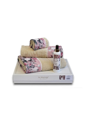 Предлагаем вашему вниманию подарочный набор полотенец турецкого производства, бренд La Maison. В набор входит три полотенца: 30х50 см., 50х90 см., 70х140 см., и аромат для дома. Подробности Ткань: махровая Состав: 100% хлопок Размер: 30х50 см. – 1шт., 50х90 см. – 1 шт., 70х140 см. – 1 шт. Плотность: 500 г/м² Количество в упаковке: 3 шт. Производитель: Турция Упаковка: фирменная коробка Описание Невозможно представить себе сегодняшний быт без такого предмета, как полотенца. Мы используем их повсюду: ванная, кухня и т.д. д. Мы ищем качественный продукт. И таким продуктом отлично выступают полотенца La Maison. Модель изготовлена из махровой ткани с печатным рисунком, в составе которой 100% хлопок. Полотенца будут хорошо впитывать влагу, поскольку их плотность составляет 500 г/м². Набор выполнен в подарочном варианте и пригодится любому, ведь полотенца нужны всем, тем более отличному качеству. Материал Махровая ткань (просторичное название – «махра») – это натуральная ткань, поверхность которой состоит из ворса (петель основных нитей). Ворс может быть как одинарным (односторонним), так и двойным (двусторонним). Характеристика Практичность (использовать такие текстильные изделия можно во множестве случаев). Долговечность благодаря высокому качеству материала. Высокая износоустойчивость. Гипоаллергенность (благодаря натуральности волокон). Прекрасная теплопроводность (зимой согревает, а летом позволяет дышать). Простота в уходе. Экологичность ткани благодаря использованию натуральных красителей. Приятные для тела изделия подарят комфорт и комфорт любого типа помещения. Антибактериальность. Является неблагоприятной средой для размножения пылевых клещей, грибков, микробов. Уход Можно использовать ручную и машинную стирку с температурой воды не более 40°C. При больших загрязнениях можно предварительно замачивать изделия. Некоторые хозяйки рекомендуют стирать махровые изделия с помощью жидких стиральных средств (например, геля для стирки цветного белья или для стирки с силиконом в составе) и использовать качественный ополаскиватель. Сушить лучше на открытом воздухе. А вот гладить их нельзя, чтобы не испортить махровую структуру. Хранение возможно в традиционном варианте вместе с постельным бельем. Внимание! Цвет и оттенок может отличаться, в зависимости от настроек монитора (яркость, контрастность, насыщенность), а также освещение.