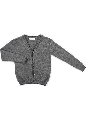 Вязаная трикотажная кофточка на пуговицах для девочки. Однотонная, тонкая, вязаная лицевой гладью, трикотажная меланжевая кофточка серого цвета с длинным рукавом – один из предметов базового гардероба, который можно носить практически со всеми вещами. Слева на груди небольшая вышивка. По V-образной горловине и по застёжке-планке – двойная, а по низу кофты и рукавов – одинарная, эластичная тонкая резинка с добавлением по краям полос чёрного, блестящего, тонкого люрекса. Красивые круглые оригинальные пуговки, по форме напоминающие драгоценные серебристые кристаллики, в этой модели не только функциональный, но и декоративный элемент, который разбавляет классический образ, создаваемый однотонной кофтой, и придаёт ей оригинальности и привлекательности. Мягкий вязаный трикотаж средней растяжимости (хорошо держит форму), приятен на ощупь и понравится каждой девчонке. Замечательная альтернатива школьному жакету! Замеры возраст (рост): длина кофты по спинке / полуобхват груди / длина рукава: • 10 лет (140 см): 49 см / 39 см / 46 см. Особенности ухода:- Стирать при температуре 30 ° С;- Не отбеливать;- Гладить при низкой температуре до 110 ° С;- Хим. чистка запрещена;- Сушить, разложив на полотенце. Ninos Alegres – одна из турецких торговых марок в сфере производства качественной детской одежды. Продукция этой марки гармонично сочетает в себе качество, удобство и современный модный дизайн, а также положительно зарекомендовала себя как на внутреннем рынке, так и за рубежом.