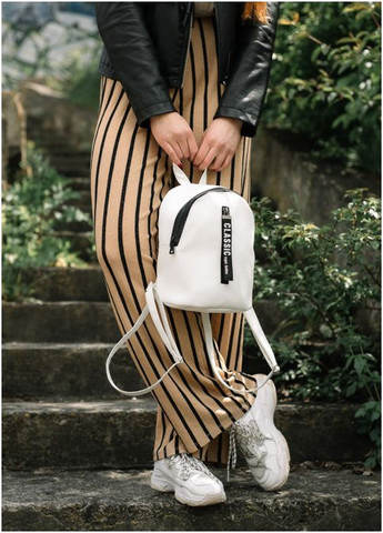 Женский городской рюкзак от ТМ SAMBAG Белый Характеристики: Длина: 25 см Высота: 30 см Ширина: 12 см Материал: экокожа Стильный и удобный женский рюкзак от SAMBAG отличный выбор для повседневного использования. Такой рюкзак идеально подойдет для работы, учебы или прогулок с друзьями, вместив в себя все необходимые вещи. Рюкзак изготовлен из эластичной инновационной экокожи и качественной фурнитуры с фиксаторами. Эти материалы устойчивы к износу, разрывам, воде и выцветанию, а значит рюкзак прослужит вам долгий срок. Внутренняя часть отделана прочной подкладкой из ткани оксфорд. Рюкзак имеет одно основное отделение на молнии, которое дополнительно закрывается клапаном з магнитом. Внутри предусмотрено отделение для документов формата А4, один открытый карман и один карман на молнии. На передней части рюкзака есть вместительный карман на молнии. На задней части рюкзака также имеется потайной карман на молнии. Рюкзак имеет две прочные регулируемые лямки и короткую ручку для переноса рюкзака в руке. О бренде: Украинский бренд SAMBAG является производителем стильных сумок, рюкзаков и различных аксессуаров, который известен в Украине с 2018 года. Бренд SAMBAG — это оригинальный стиль и высокое качество крафтовой продукции. Товары SAMBAG имеют высокое преимущество по сравнению с китайскими аналогами.