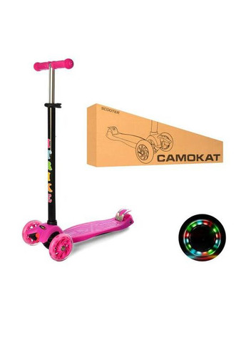 Самокат обязательно понравится малышу и вас не оставит безразличными. Он поможет весело и с радостью проводить время, будет способствовать развитию координации движений и умению держать равновесие. Колеса светятся во время езды. Руль регулируется по высоте. Характеристика: Самокат подходит для детей от 3-х лет. Рама самоката изготовлена из стали с алюминием, имеет пластиковые детали. Руль регулируется по высоте. Ручки резиновые. Самокат оснащен тремя колесами, обеспечивающими устойчивость и безопасность. Колеса выполнены из ПВХ. Подсвечиваются во время езды. Материал: пластик, металл. Высота руля: 79-88 см. Подножка 40х13 см Диаметр передних колес: 12 см.