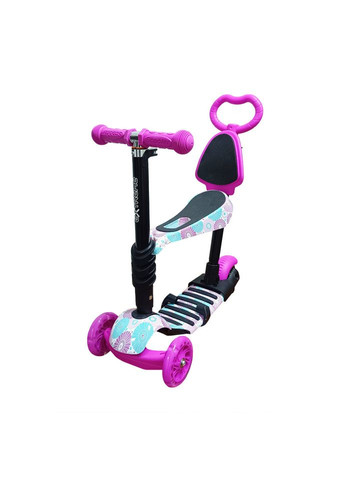 Самокат Maraton I Candy - 3 в 1 с защитным бортиком, светящимися колесами предназначен для детей от 10-ти месяцев до шести лет. Специально для самых маленьких, самокат оснащен съемным бампером-ограничителем и подставкой для ног на руле. Бампер-ограничитель обеспечит малышу безопасное катание и убережет от выпадения во время движения. Для полного контроля самокат оснащен родительской ручкой. При необходимости ее можно отрегулировать по высоте, а также по мере роста ребенка ее можно снять. Самокат, который будет расти с Вашим малышом, благодаря возможности трансформировать его и подобрать оптимальный вариант под нужды ребенка, несмотря на время года или возраста. Если ребенок хочет его использовать как беговел или как самокат, нет ничего проще, меняем конфигурацию и вперед к новым приключениям в увлекательном путешествии по пейзажным окрестностям любимых мест города. Базовая полная сборка для самых маленьких - это прекрасный вариант прокатать малыша на каталке с родительской ручкой, а специальные подножки сделают путешествие комфортным для ребенка. Дополнительные колеса так же гарантируют устойчивость и безопасность. Родителям бывает неудобно передвигаться на длительные дистанции с маленькой непоседой, которой по дороге нужно рассмотреть каждый листок на всех деревьях и это нормально так дети знакомятся и познают внешний мир, а дойти до места назначения нужно быстрее. Трансформируется в толкар и уже деткам чуть постарше легко самостоятельно учиться управлять своим первым транспортом, развивать моторику и учиться держать равновесие. Самокат с регулируемым по высоте рулем, светящимися колесами. Легкий в управлении и благодаря широким колесам устойчив, благодаря ребристой платформе из специального пластика не скользит и не выпадает ножка.
