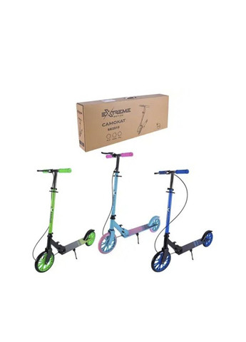 Самокат модели Scooter Extreme из городской серии - это идеальное средство для беззаботной поездки по улицам вашего города или в парке, как для родителей, так и для детей. Самокат предназначен для активного отдыха, а благодаря своей прочной и надежной конструкции, а также компактному складыванию станет любимым транспортом каждого ребенка. Самокат обладает хорошей маневренностью во время движения, поэтому ребенок будет в восторге от катания на нем. • Материал: Дека и руль изготовлены из стали. Колеса диаметром 200 мм, с подшипниками ABEC-5, которые выполнены из прочного и качественного материала – полиуретана, что обеспечивает бесшумное и комфортное передвижение по тротуару или парку. Прорезиненные и очень удобные ручки для комфортного путешествия. Самокат оснащен нескользящей поверхностью, для уверенной стойки во время езды. Характеристики: • Модель самоката представлена в 2-х ярких цветах, поэтому есть возможность выбрать тот, который больше по душе. Подходит как для мальчика, так и для девочки. • У модели регулируемая высота руля, что позволяет выставить удобное положение для ребенка или взрослого по его росту. • Есть возможность ручного тормоза, который удобно установлен на руле. А для дополнительной безопасности есть еще ножной тормоз. • Присутствует складной механизм, для удобной транспортировки самоката. Ручки руля снимаются и крепятся на специальные пластиковые зажимы. • Подножка, чтобы можно было поставить самокат. • Рекомендуемый возраст: 6+ • Максимальная нагрузка – 100 кг. Размеры: • Длина самоката: 87 см • Размер деки: 52*10 см • Ширина руля: 34 см • Регулировка высоты стойки руля: изменяется от 76 см до 98 см • Размер самоката в сложенном состоянии: 76х10х29 см Упаковка: коробка Размер упаковки: 80х11х32,5 см. Данный товар представлен в ассортименте. Цена указана за 1 шт. Страна производитель: Китай.