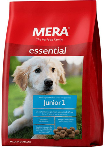 MERA Essential Junior 2 — наша классика для соответствующего вида питания молодых собак до 6 месяцев. По сути мы объединяем наш древний семейный рецепт и успешную классику для благополучия вашей семейной собаки. Благодаря концепции защиты MERA Essential Junior 2 содержит сбалансированный пакет активных ингредиентов, соответствующий ежедневным потребностям собаки. Поддержка иммунной системы пребиотиком инулином, маннановыми олигосахаридами и бета-глюканами. Рецепт без пшеницы. Пшеница — один из самых распространенных возбудителей аллергии у собак. Защита суставов: с глюкозамином и хондроитинсульфатом, строительными блоками для суставов. Для больших пород после 6 месяцев. С пониженным содержанием энергии. Комплексный уход за щенками и молодыми собаками MERA Essential Junior 2 идеально подходит для больших пород в фазе роста после 6-месячного возраста. Наши собаки уникальны, и то же касается их потребностей в питании. Основные продукты обеспечивают каждую собаку на любом уровне активности правильным кормом — от классической домашней собаки до высокоэффективных спортсменов. Рецепт: белок птицы (28%, частично высушенный и гидролизованный), рис, кукуруза, ячмень, птичий жир, льняное семя, свекольный жом, лигноцеллюлоза, яичный порошок, пивные дрожжи (высушенные), лососевое масло (0.00). , хлорид натрия, инулин цикория (0.2%), клеточные стенки дрожжей (=0.05% бета-глюканов), карбонат кальция, хлорид калия, глюкозамин из тканей животных (0.02%), хондроитинсульфат (0.01%). Аналитические составляющие: белок — 24%, содержание жира — 12%, сырая клетчатка — 2,5%, сырая зола — 6.5%, кальций — 1.15%, фосфор — 0.82%, натрий — 0.35%. Пищевые добавки: витамин А — 12 000 МО, витамин D3 — 1500 МО, витамин Е — 200 мг, витамин С — 100 мг, медь (в виде медно- (II) -сульфата, пентагидрат) -12.5 мг, цинк (в виде сульфата цинка, моногидрат) — 100 мг, цинк (в виде гидрат глицин-цинкового хелата (твердый)) — 60 мг, железо (в виде сульфата железа (II), моногидрат) -250 мг, марганец (в виде сульфата марганца (II), моногидрат) — 35 мг, йод (в виде йодата кальция, безводный) — 2.0 мг, селен (в виде селенита натрия) — 0.35 мг.
