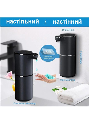 Сенсорный автоматический дозатор для пены с жидкого мыла, бесконтактный диспенсер для пены с датчиком, черный, 350 мл Описание: Обновленный сенсорный дозатор пены с современным дизайном и удобным функционалом создан для вашего комфорта и гигиены. Безконтактная технология и зарядка через USB-C делают устройство практичным и долговечным. Особенности продукта: Бесконтактная подача мыла: Высокоточный сенсор подает 1 мл мыла за 0,25 секунды. Зарядка через USB-C: Литий-ионная батарея обеспечивает до 30 дней работы без подзарядки. Эргономичный дизайн: Устройство можно установить на стол или стену с помощью входящих в комплект креплений. Водонепроницаемость IPX6: Отлично подходит для использования в ванной или на кухне. Объем: 350 мл для длительного использования. Технические характеристики: Размеры: 10,4 см (Д) x 7,5 см (Ш) x 18,4 см (В) Цвет: Черный Время зарядки: 2–3 часа Материал корпуса: Прочный ABS Рекомендации по использованию: Перед использованием полностью зарядите устройство. Избегайте использования мыла с крупными частицами. Регулярно очищайте устройство для продления срока службы. Поднесите руку под сенсор для активации подачи пены. Преимущества: Максимальная гигиена благодаря бесконтактному использованию. Стильный дизайн, подходящий к любому интерьеру. Экономичность и экологичность благодаря USB-зарядке.
