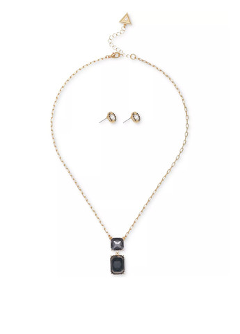 Набор женских украшений от GUESS. Комплект украшений из цветного камня с оригинальной подвеской и серьгами-гвоздиками. Этот комплект Guess, воплощающий нежный весенний стиль, который можно носить с собой в любое время года, включает в себя ожерелье с подвеской и серьги-гвоздики с логотипом. Колье красиво и утонченно смотрится на вашей шее, серьги превосходно украсят ваши ушки! Брендовые украшения, которые привлекут взгляды и подарят комплименты. Набор в подарочной упаковке. Отличное качество.