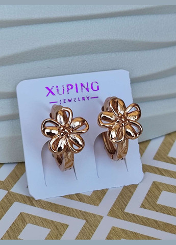 Яркие сережки от фирмы Xuping Покрытие: 18К (позолота) Размеры: Диаметр - 13 мм. Цветок - 10 мм. В чем преимущества ювелирных изделий Xuping 1. Качественный сплав, который отличает эту фирму от других низкопробных аналогов. 2. Гипоаллергенные изделия, которые не вызывают раздражений, покраснений и аллергии. 3. Долговечные - стойкие, крепкие, надежные составляющие, которые входят в медицинский сплав изделий. 4. Натуральные камни - в большинстве украшений используются инкрустированный цирконий, весьма хороший вид камня. 5. Гальванизация - один из самых лучших способов нанесения покрытия на изделие. Данный бренд использует родий, золото и некоторые другие металлы для покрытия. Советы по уходу и хранению бижутерии Xuping Чтобы украшения Xuping надолго сохранили свою привлекательность, важно правильно их хранить. Лучше всего использовать отдельные коробочки или текстильные мешочки. Даже если вы складываете их в большой сундук для бижутерии, убедитесь, что изделия не соприкасаются друг с другом. Так вы сможете избежать царапин и потертостей. Есть еще несколько советов, которые помогут сберечь любимые украшения: 1. Снимайте бижутерию, когда убираете, купаетесь или занимаетесь спортом; 2. Не носите украшения на пляж или в солярий; 3. Следите, чтобы позолоченные изделия не соприкасались с моющими средствами, лаками для волос, дезодорантами и парфюмерией.