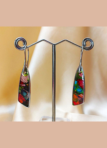 Сережки бижутерия Бижутерный сплав серебристого цвета крепление типа " крючок" Подвеска - бижутерная смола имитирующая камни самоцветы Длина сережки 5 см ширина сережки 1.2 см
