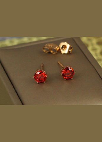 Серьги гвоздики Xuping Jewelry красный фианит на шесть креплений 6 мм золотистые диаметр 6 мм застежка гвоздик