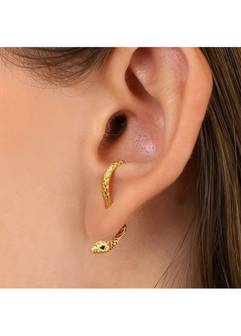 Описание: Золотистые серьги-гвоздики со змеёй, обнимающей ухо. Складная многослойная конструкция. Длина 2.4 см. Характеристики: Тип: Серьги-гвоздики со змеёй Дизайн: Змея, складные многослойные Материал: Ювелирный сплав Цвет: Золотистое покрытие Длина: 2.4 см Особенности: Складная конструкция